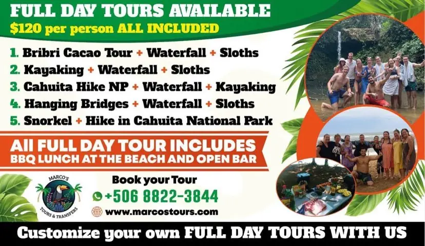 ¡Experiencia Caribeña 3 en 1 – ¡El Mejor Tour en la Costa Caribeña! Tour de Cacao Bribri + Cascada Majestuosa + Parque Nacional Cahuita Inicia a las 8:00 AM | Finaliza alrededor de las 4:00 PM | Incluye almuerzo Tour Privado | Mínimo 2 personas | Aventura de día completo ¡Prepárate para un viaje de día completo a través de la cultura, la naturaleza y la aventura en esta experiencia 3 en 1, combinando lo mejor del Sur del Caribe en un día inolvidable! ⸻ Destacados del Tour: Experiencia de Cacao Bribri Visita a una familia indígena Bribri en las montañas y aprende cómo hacen cacao desde cero, de manera artesanal, en el corazón de su comunidad. También explorarás sus plantas medicinales y su cultura tradicional. La Cascada Majestuosa Después de hacer cacao, camina hacia una cascada escondida en la selva donde disfrutarás de un baño refrescante y exfoliación de cacao bajo las cascadas. ¡Un momento de spa natural perfecto! Sendero en el Parque Nacional Cahuita Caminata a lo largo del icónico sendero costero con tu guía naturalista bilingüe, avistando perezosos, monos, tucanes, serpientes, iguanas, tortugas y más, mientras aprendes sobre la rica biodiversidad de Costa Rica. ⸻ Lo Incluido: •Guía privado bilingüe •Transporte (ida y vuelta) •Tarifas de entrada •Almuerzo tradicional con una familia local •Demostración + degustación de cacao •Baño en la cascada + exfoliación •Caminata en Parque Nacional Cahuita ⸻ Qué Traer: 🩱 Traje de baño y toalla 🧴 Protector solar y repelente de insectos 👟 Zapatos cómodos 🧢 Sombrero y gafas de sol 📸 Cámara 💵 Efectivo pequeño para souvenirs o extras 👕 Cambio de ropa seca ⸻ ¿Por qué Elegir Este Tour? Es cultural, es salvaje, es refrescante—es lo mejor del Caribe en un solo día. Perfecto para amantes de la naturaleza, exploradores culturales y buscadores de aventura. Tour Privado – Mínimo 2 personas | Satisfacción máxima garantizada